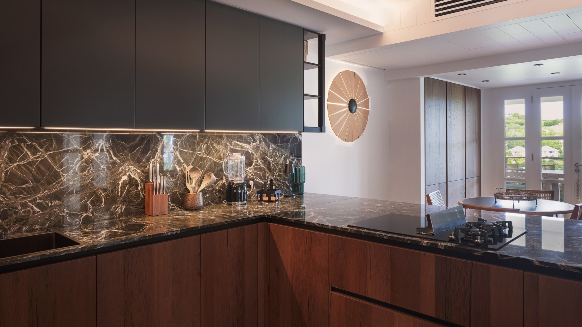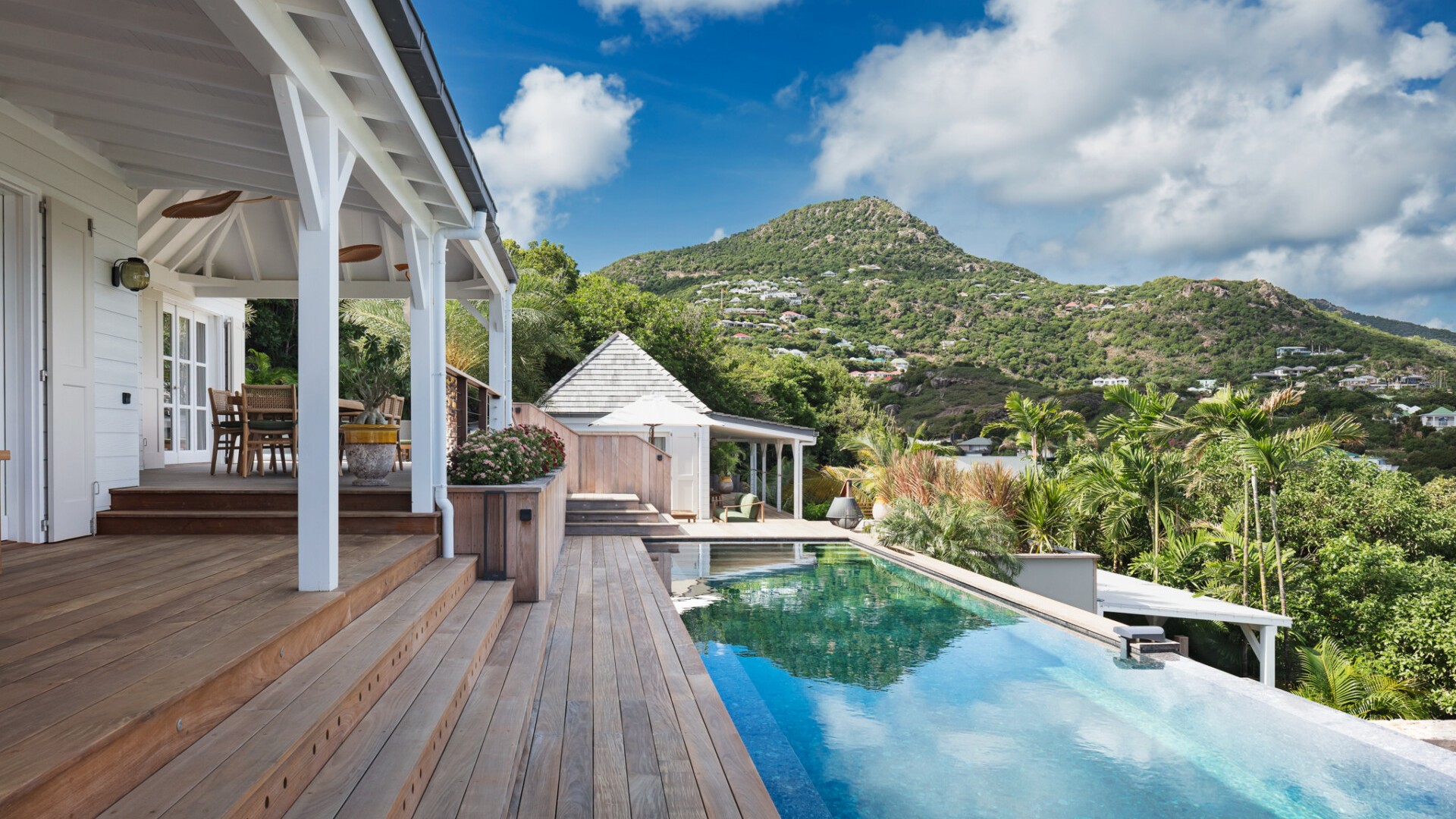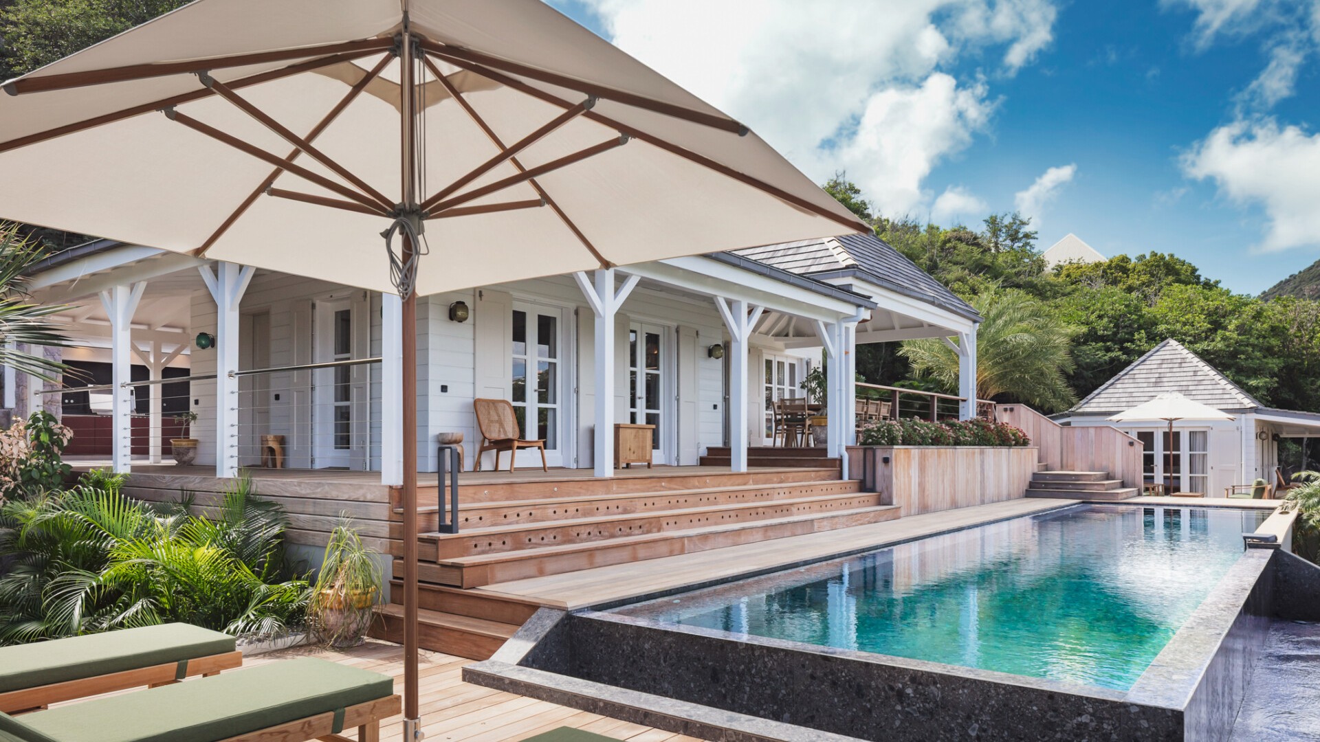 A dedicated entertainment area with a pool table and ping pong table brings a playful dimension to the villa, ideal after a day discovering the wild coves of the island, enjoying waterside dining in Grand-Cul-de-Sac, or exploring the scenic paths around the Vitet hills.