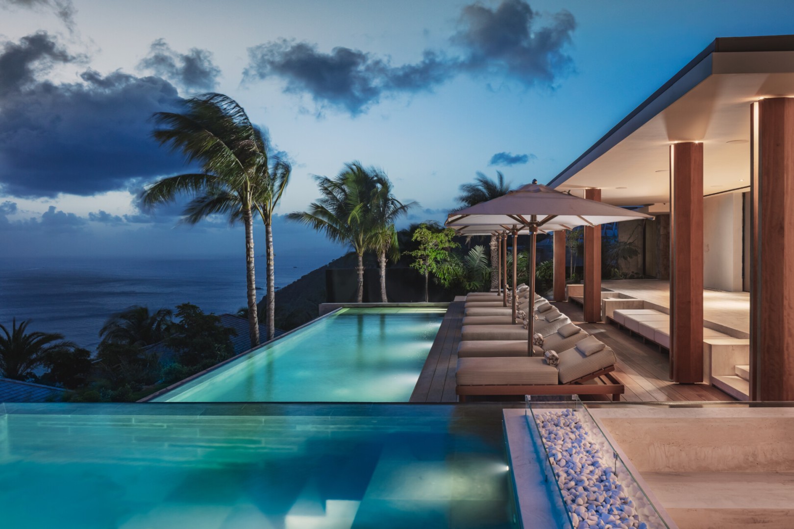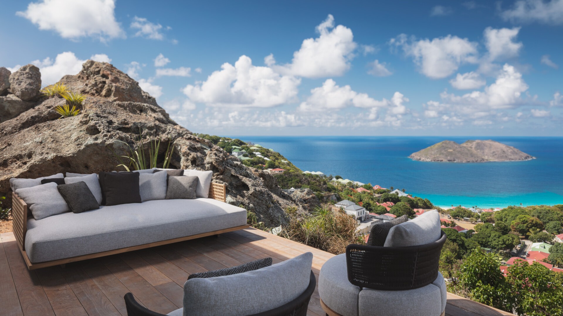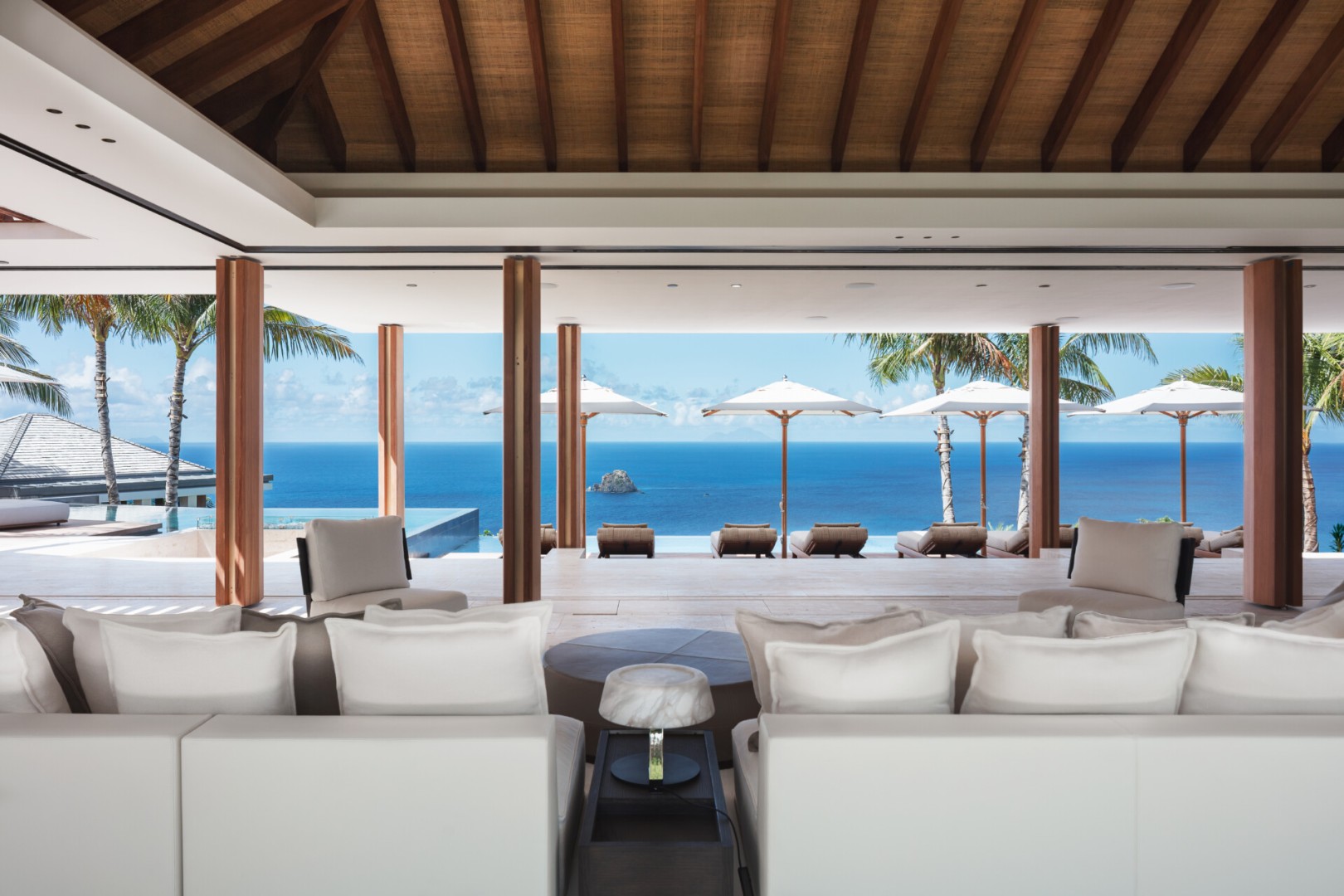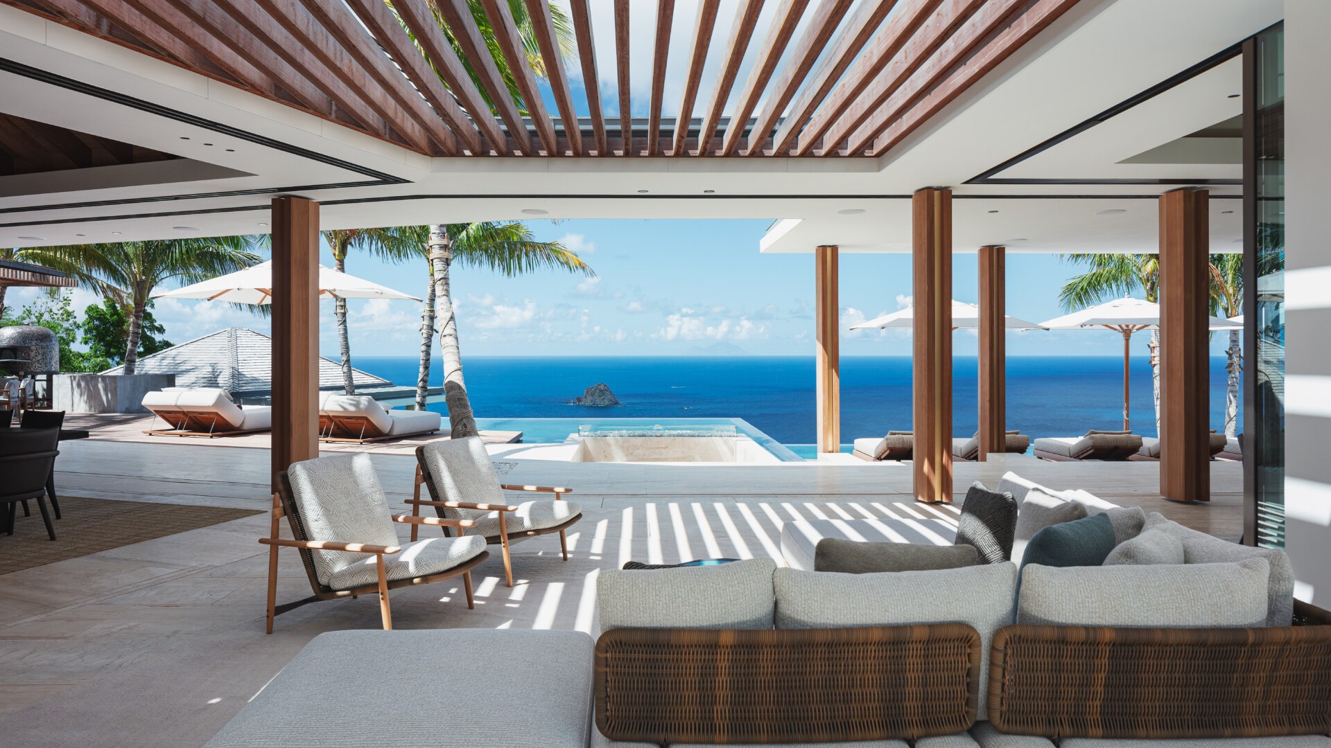 Each pavilion frames uninterrupted sunrise-to-sunset views, offering complete privacy and effortless luxury. Set high in Colombier with sweeping vistas over Gustavia’s harbor and the sands of Flamands, the villa feels secluded yet remains only minutes from Eden Rock and the island’s vibrant heart.