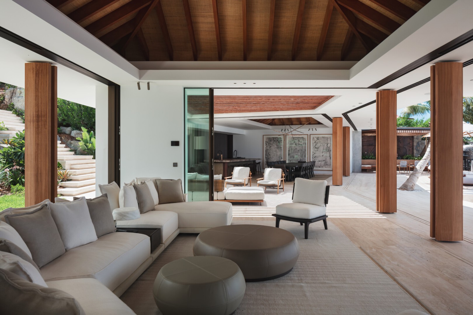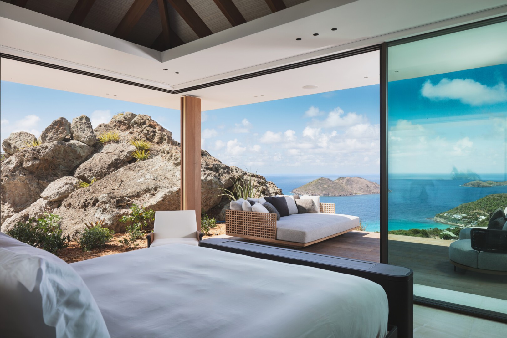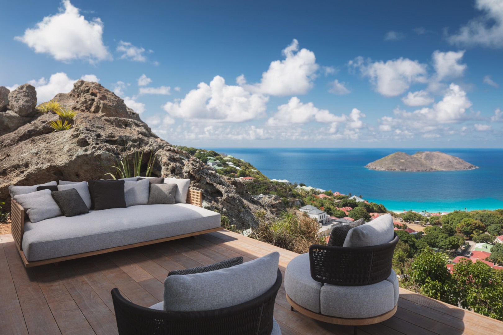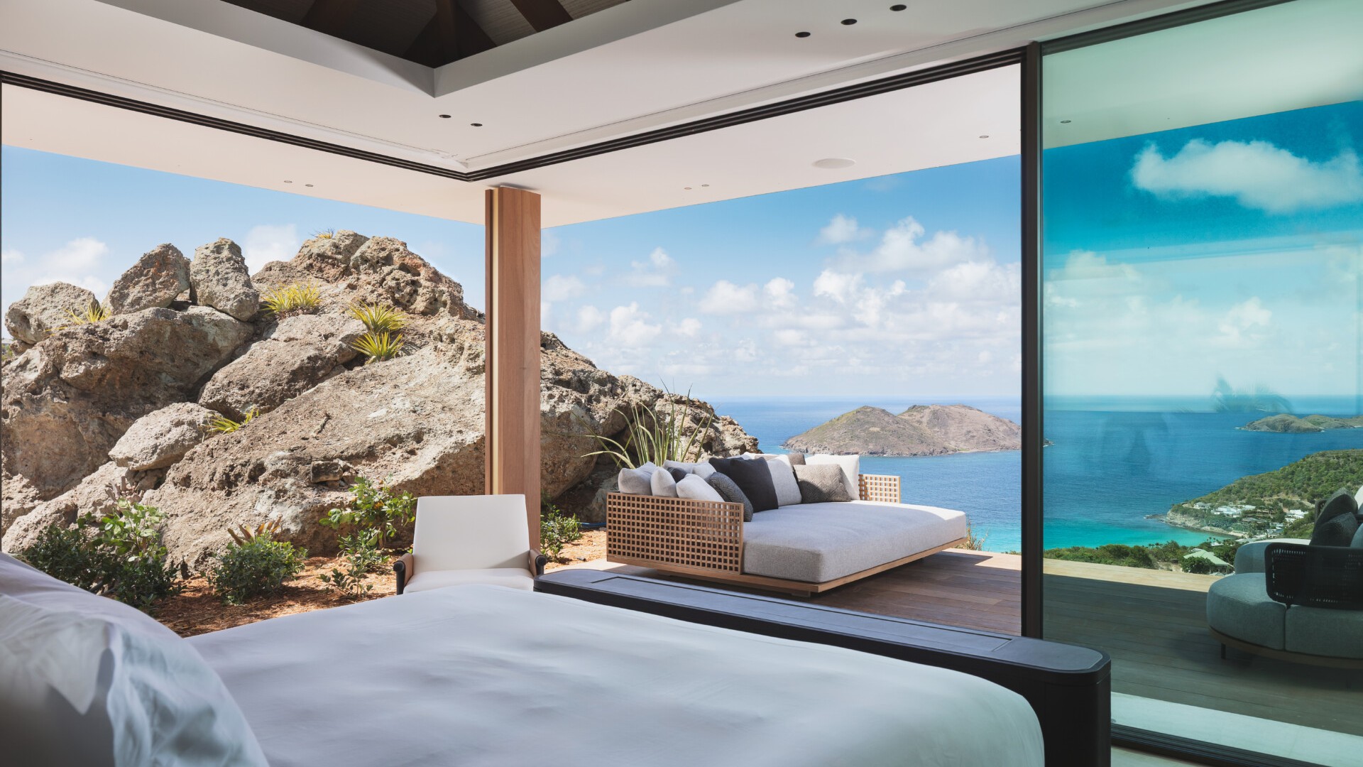 Each pavilion frames uninterrupted sunrise-to-sunset views, offering complete privacy and effortless luxury. Set high in Colombier with sweeping vistas over Gustavia’s harbor and the sands of Flamands, the villa feels secluded yet remains only minutes from Eden Rock and the island’s vibrant heart.