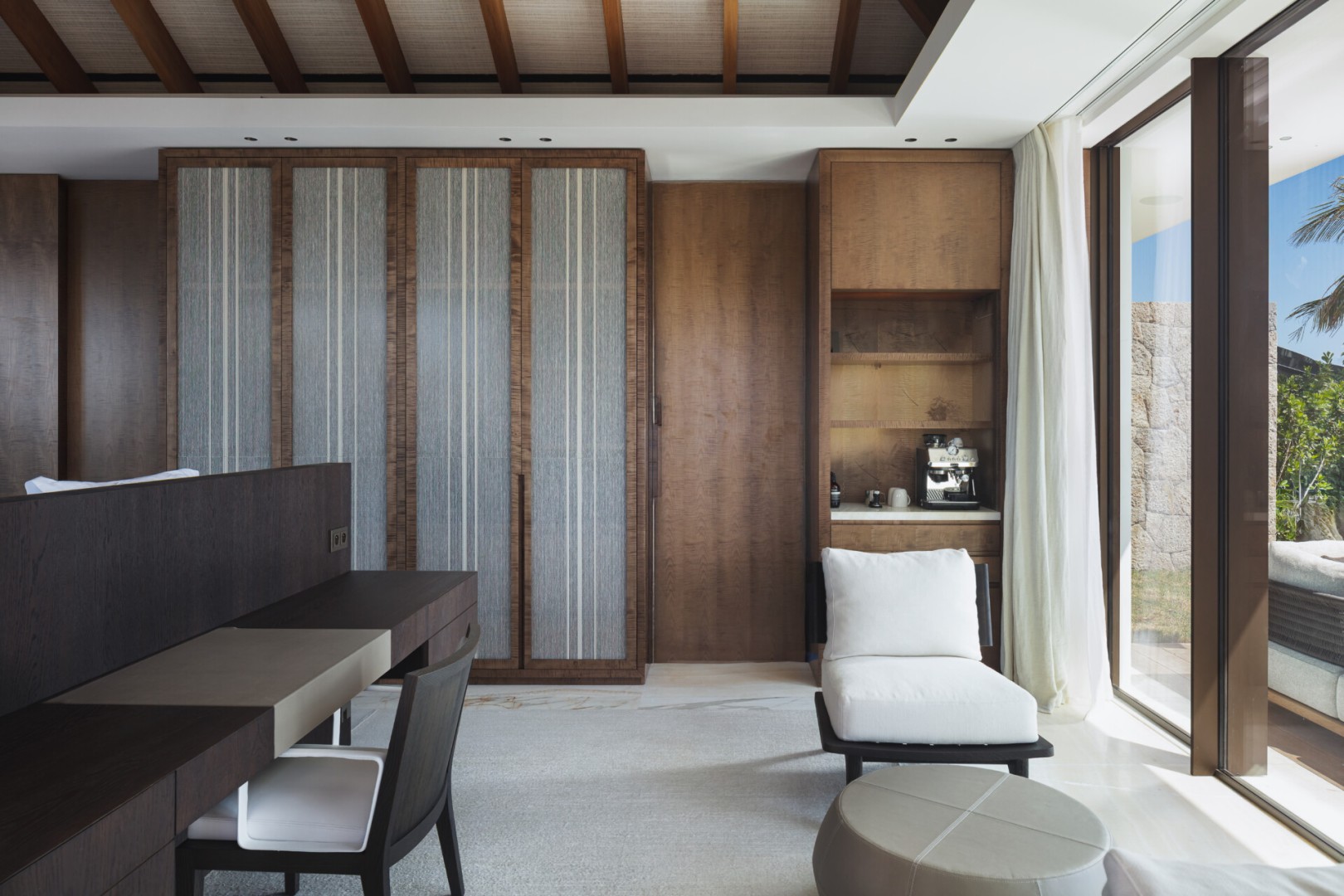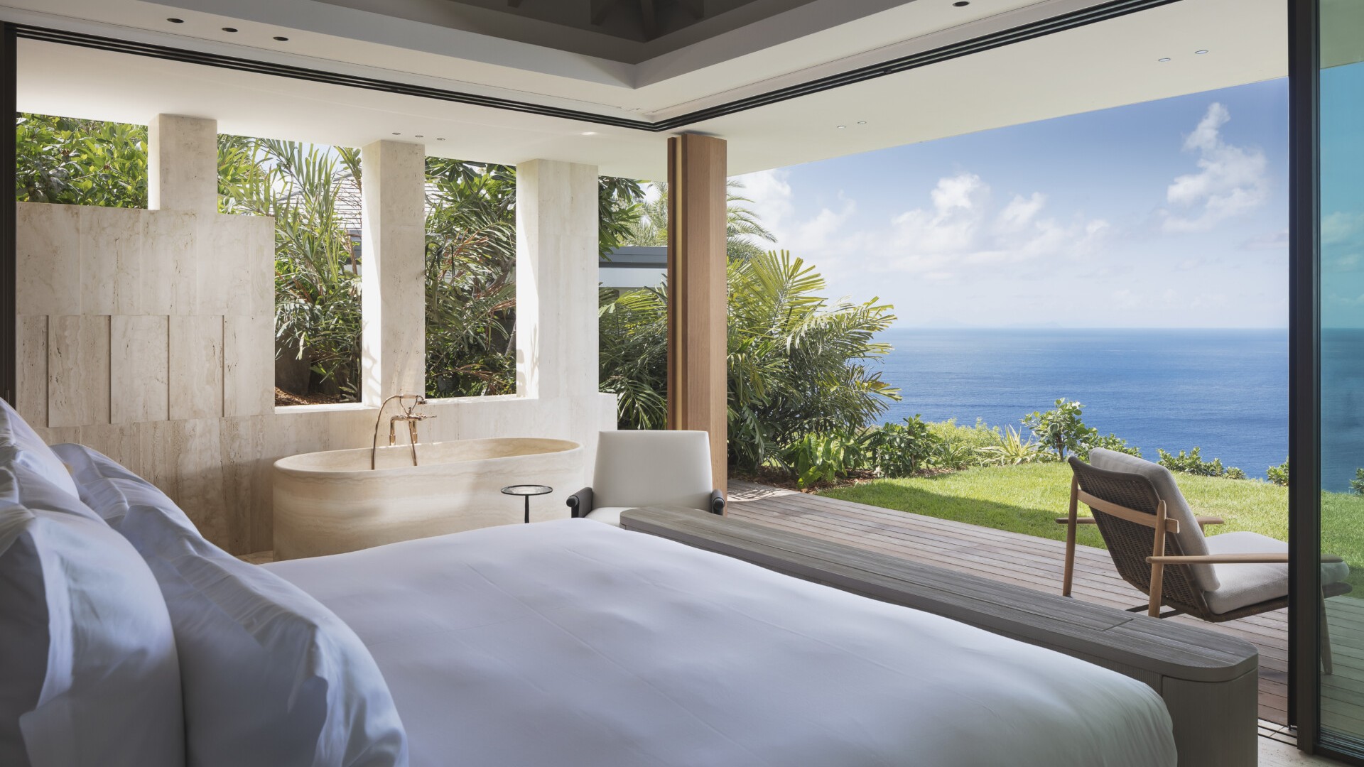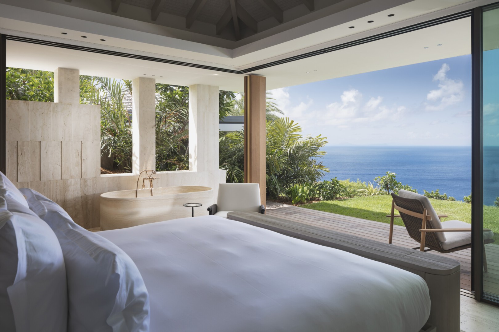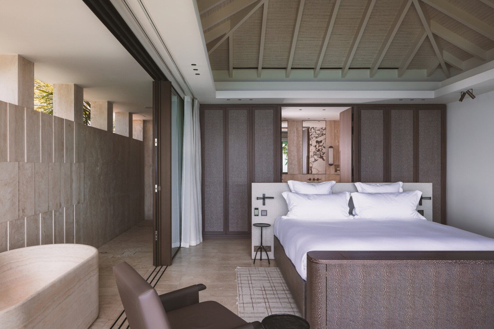 The Master, Premier, and Signature Pavilions are private havens—each with a king bed, smart-home comfort, elegant interiors, and serene sea-facing terraces. Culinary spaces include a show kitchen, chef’s kitchen, pergola dining pavilion and pizza oven.