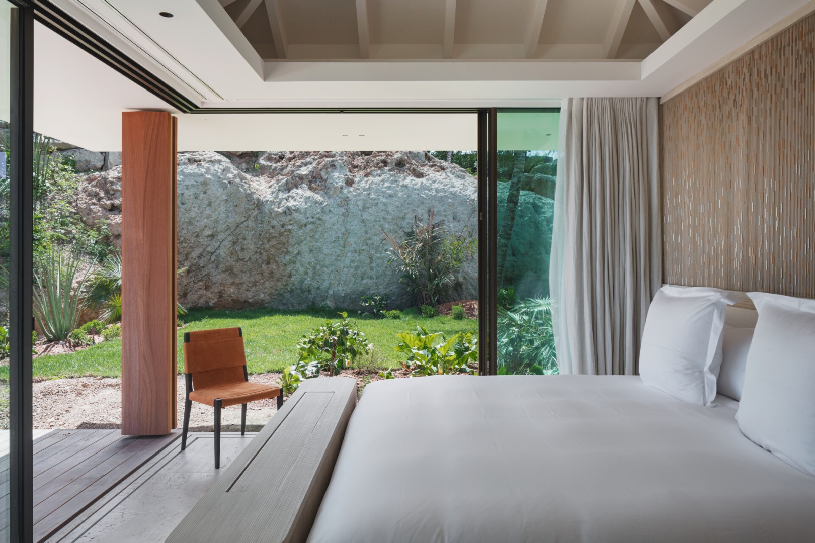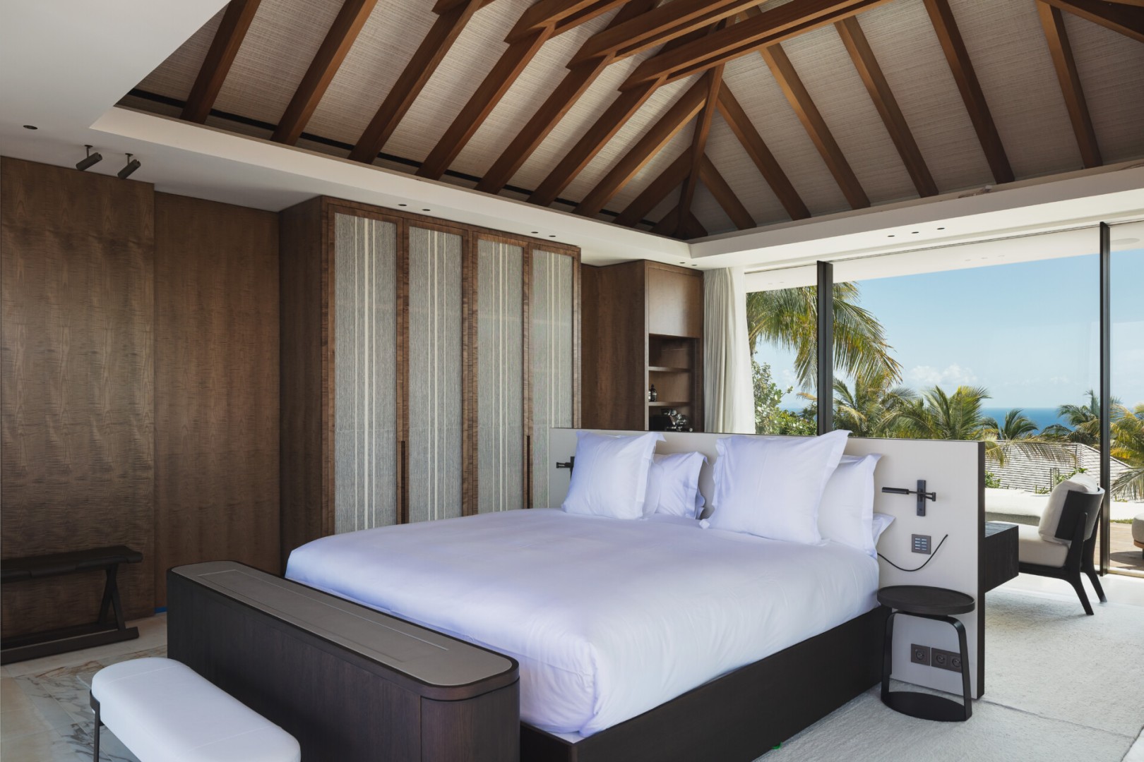 Well-being is elevated through a Technogym fitness studio, yoga deck, spa-treatment spaces, and St. Barth’s only private padel court overlooking Flamands Bay.