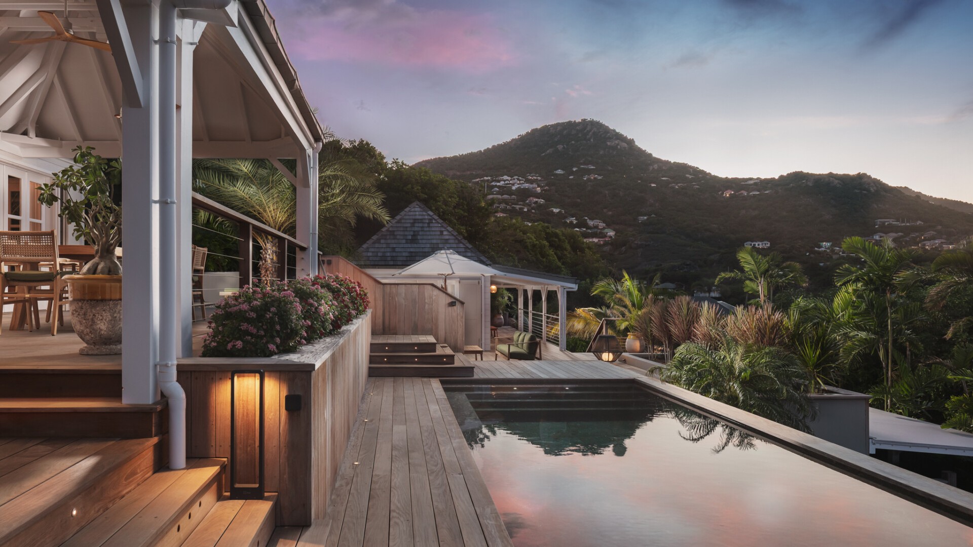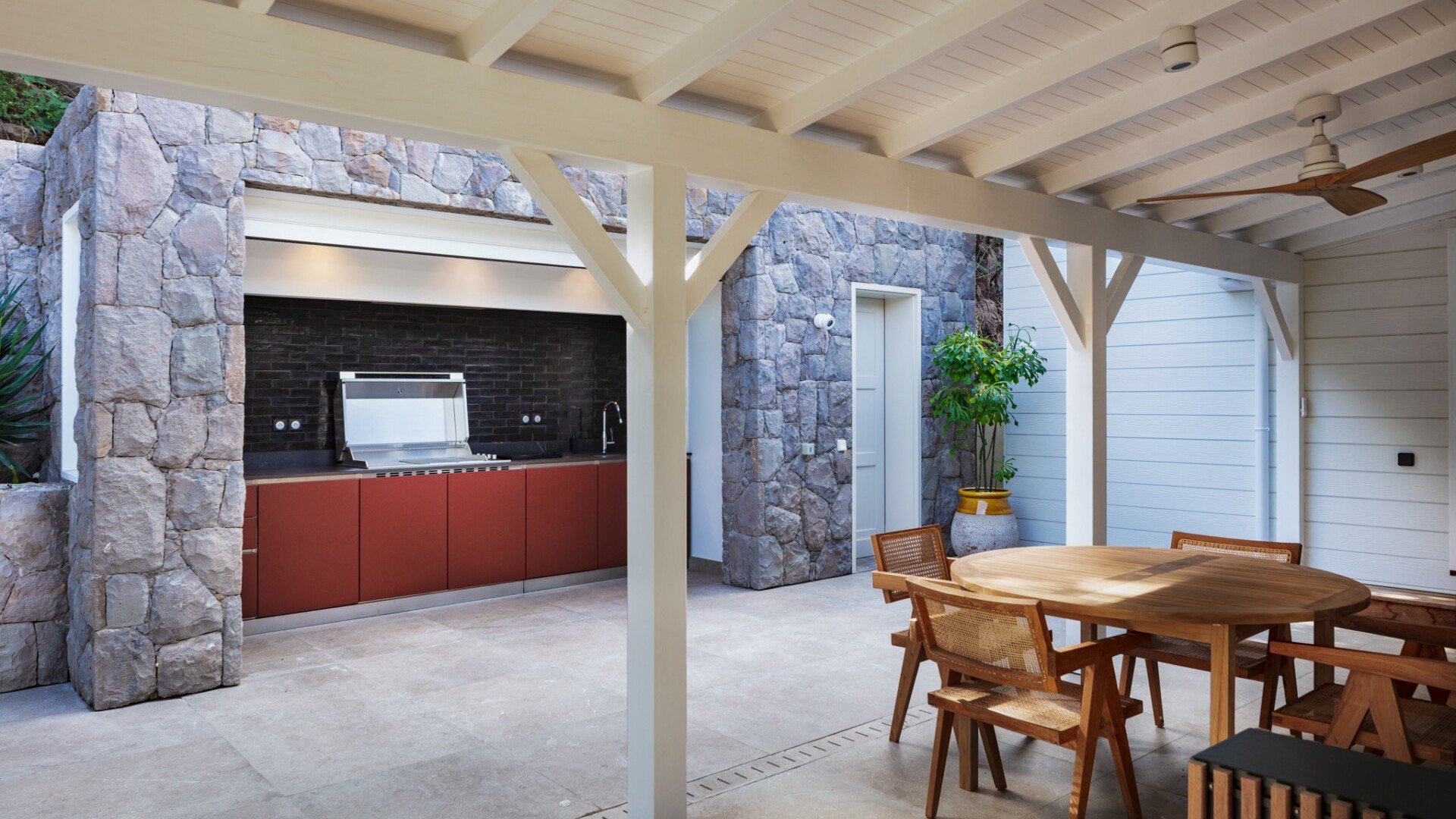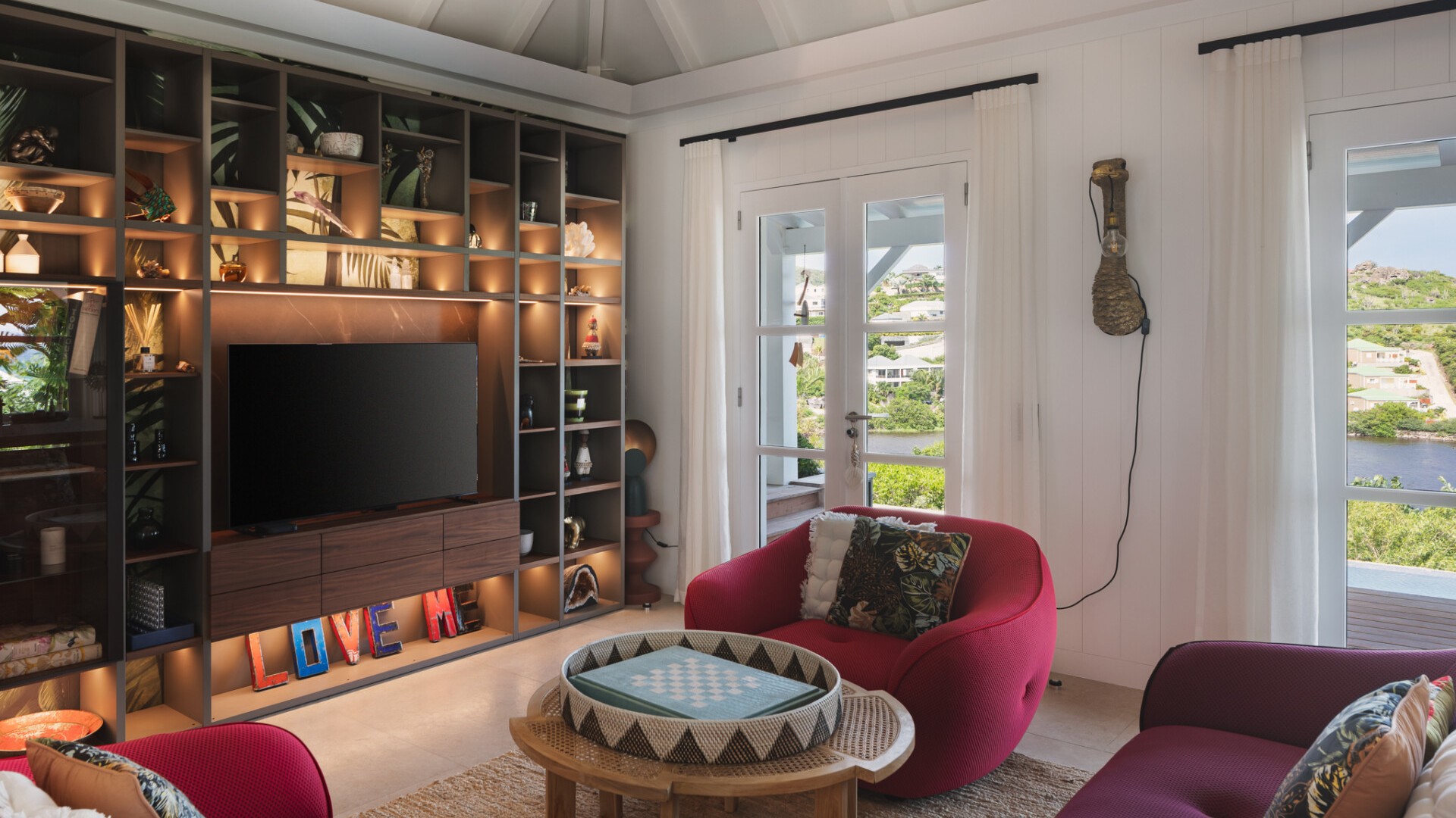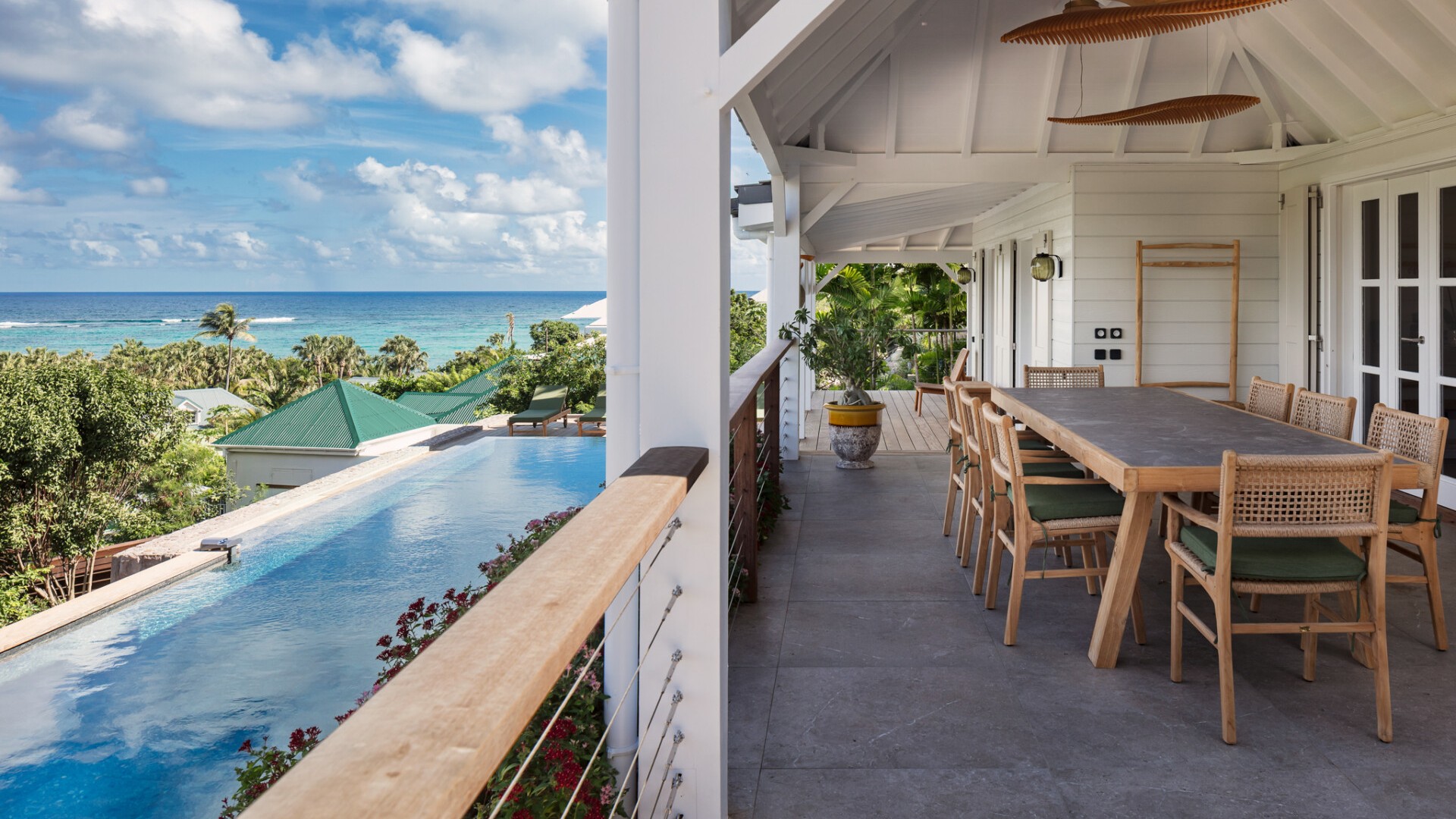 A dedicated entertainment area with a pool table and ping pong table brings a playful dimension to the villa, ideal after a day discovering the wild coves of the island, enjoying waterside dining in Grand-Cul-de-Sac, or exploring the scenic paths around the Vitet hills.