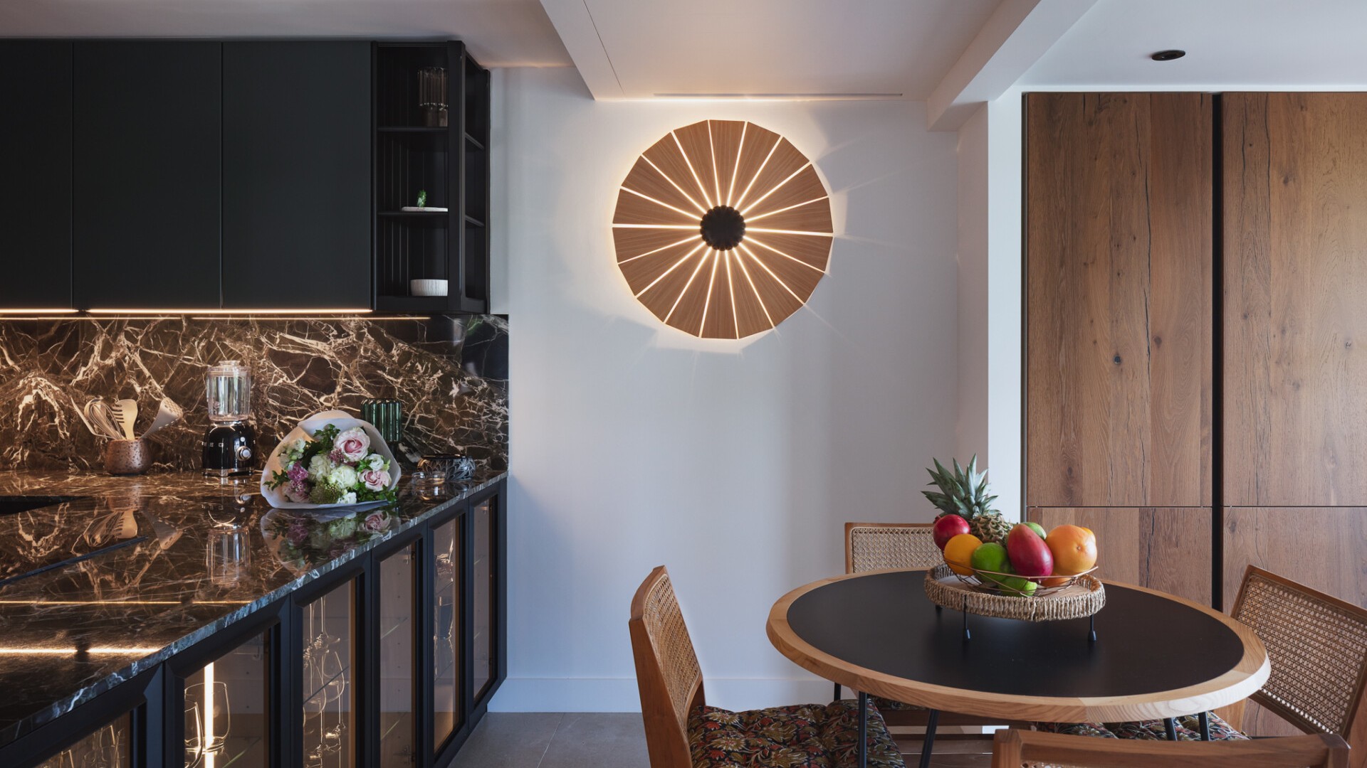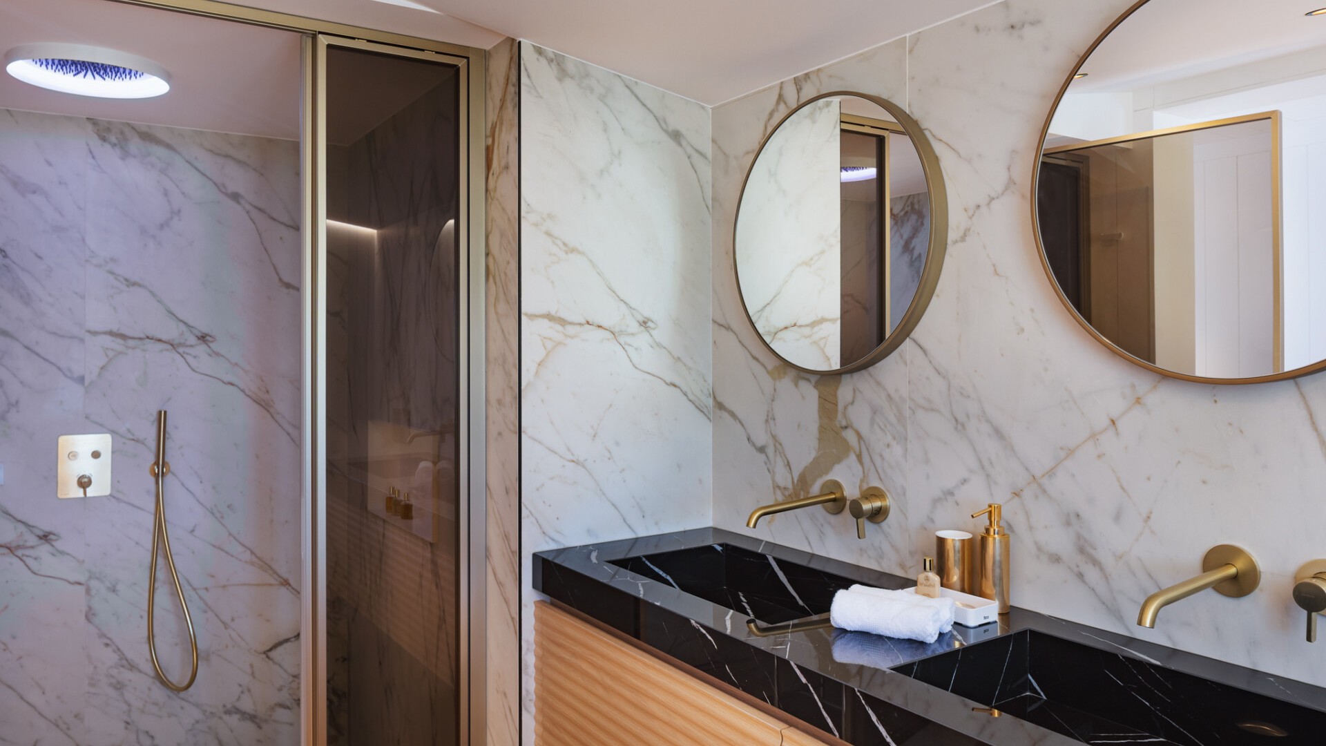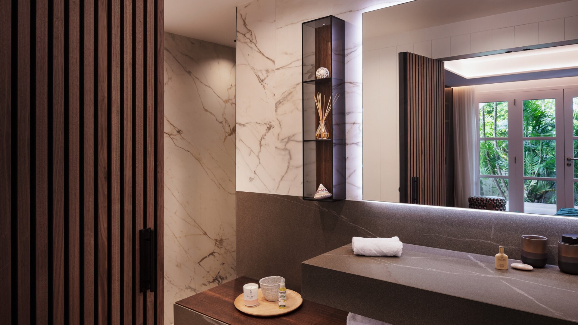 Each of the three bedrooms features its own en-suite bathroom, conceived as serene suites with natural tones, fine linens, and direct outdoor access, ensuring both intimacy and ease throughout the stay.